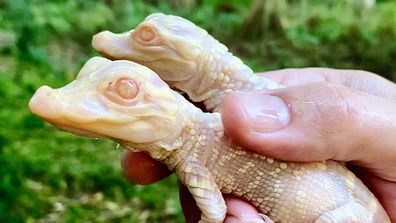 Cucciolo di coccodrillo albino nato in un parco naturale